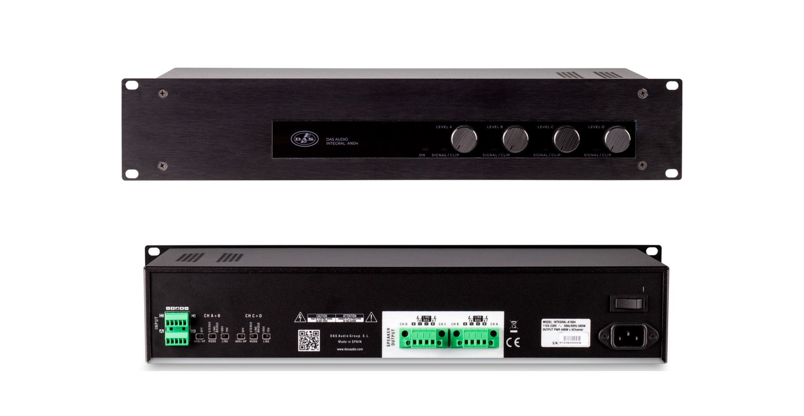 INTEGRAL-MA1604 es un amplificador-matriz de 4 canales ( 4x400W a 4 ohm) de 2U de rack de altura con procesador digital de señal incluido, ideal para uso en instalaciones. La unidad cuenta con 4 canales de entrada analógicos, 8 canales de salida analógicos y 4×4 canales de audio digital DANTE. El control, configuración y manejo de la unidad se puede hacer con el software ALMA a través de ethernet or mediante protocolo Open Sound Control (OSC). Los canales de Audio digital pueden ser procesados e inyectados de vuelta en la red.